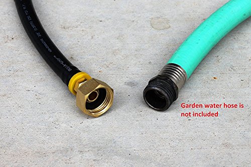 Flexible hose allows the adapter to access tight spaces and minimizes stress on pipes and fittings. 100% outdoor rated, virtually indestructible, impervious to water and oil. Easily connects to air compressor and garden faucet to winterize lawn sprinkler systems, faucets, and plumbing to prevent damage due to freezing. Compatible with standard garden hose threading and air compressor quick-connect commonly found in North America.