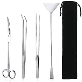 Aquarium Tools, Aquatic Plants Stainless Steel Tool – 4 in 1 Aquascaping Tweezers Scissors Spatula Cleaning Tool Set for…
