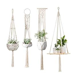 Mkono Macrame Plant Hangers Hanging Plant Shelf Indoor Wall Planter Decorative Flower Pot Holder Boho Home Decor, Set of…