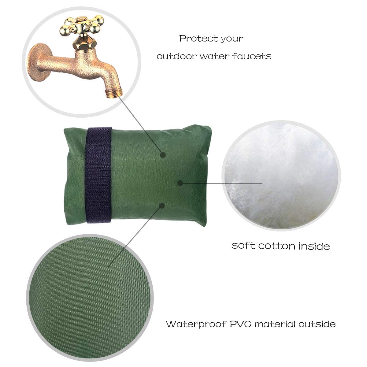 Feature: outdoor faucet cover, outdoor faucet covers for winter, faucet socks insulated, outside faucet cover freeze protection.
