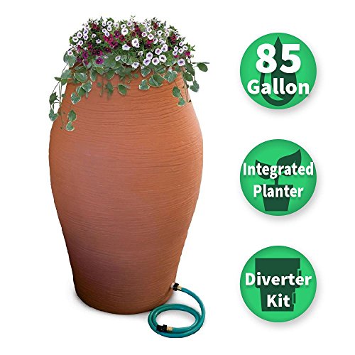 85 gal. Terra Cotta WaterUrn Decorative Urn Rain Barrel Kit with Integrated Planter
