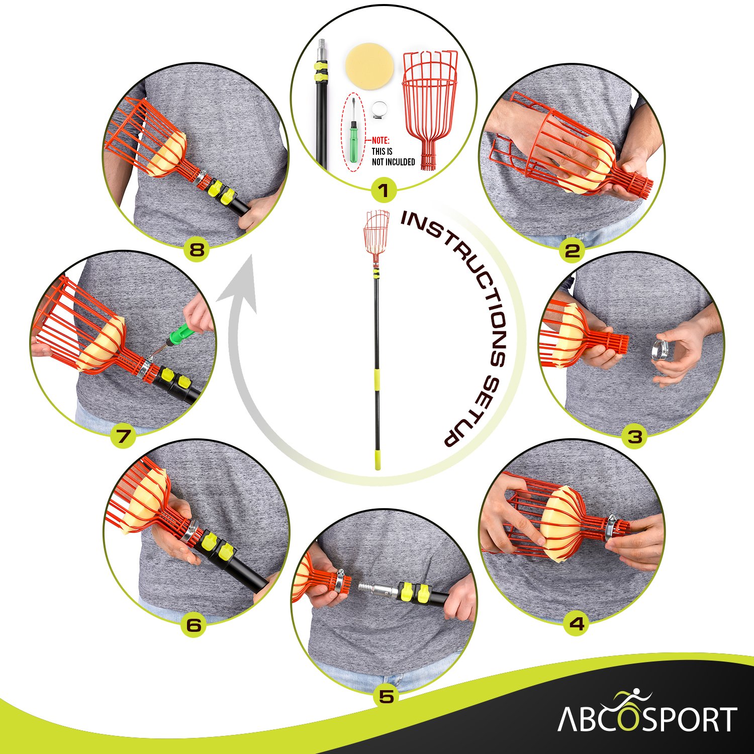 Abco Tech Fruit Picker Tool or Fruit Tree Picking Pole with Basket–13ft Long Aluminum Tree Picker with Telescoping Pole…