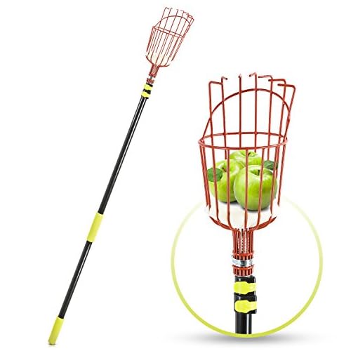 EXTENDABLE POLE – The telescopic pole handle can be extended in three steps such that you can reach fruits at all heights, and conveniently pick the fresh and ripened fruits. Extending our fruit picker garden tool is made easy with a smart locking and unlocking yellow buckle.