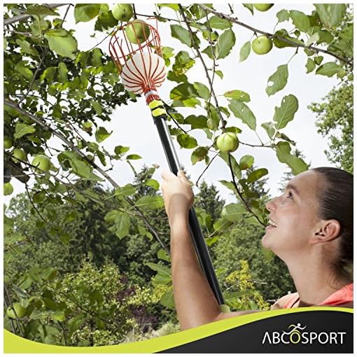 Abco Tech Fruit Picker Tool or Fruit Tree Picking Pole with Basket–13ft Long Aluminum Tree Picker with Telescoping Pole…