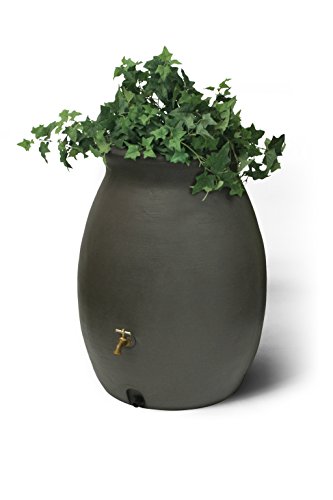 This 50-gallon Castilla rain barrel is constructed from tough, roto molded plastic able to withstand extreme temperatures and will not chip, fade, or crack over time. The rain barrel comes with a convenient spigot and corrosion-proof screen guard. The rain barrel doubles as a planter and measures 23 x 33-inch.