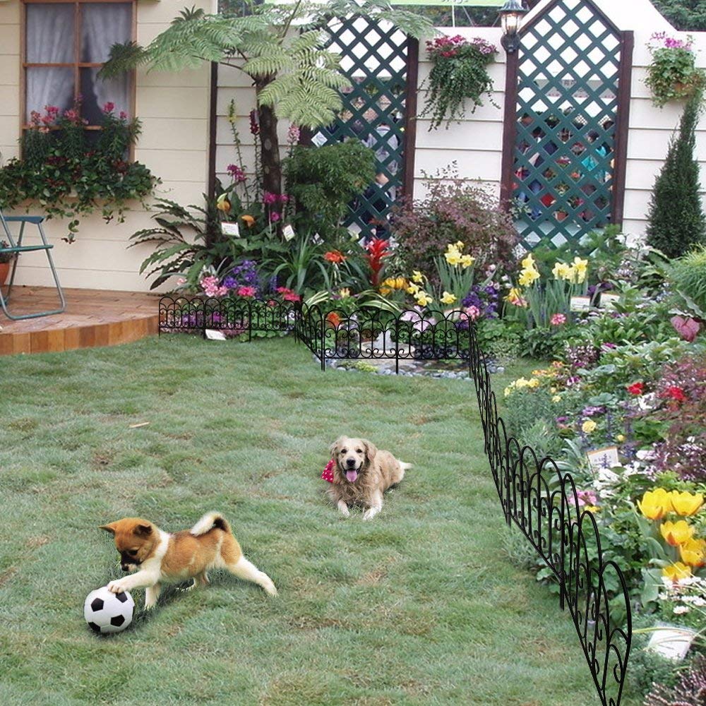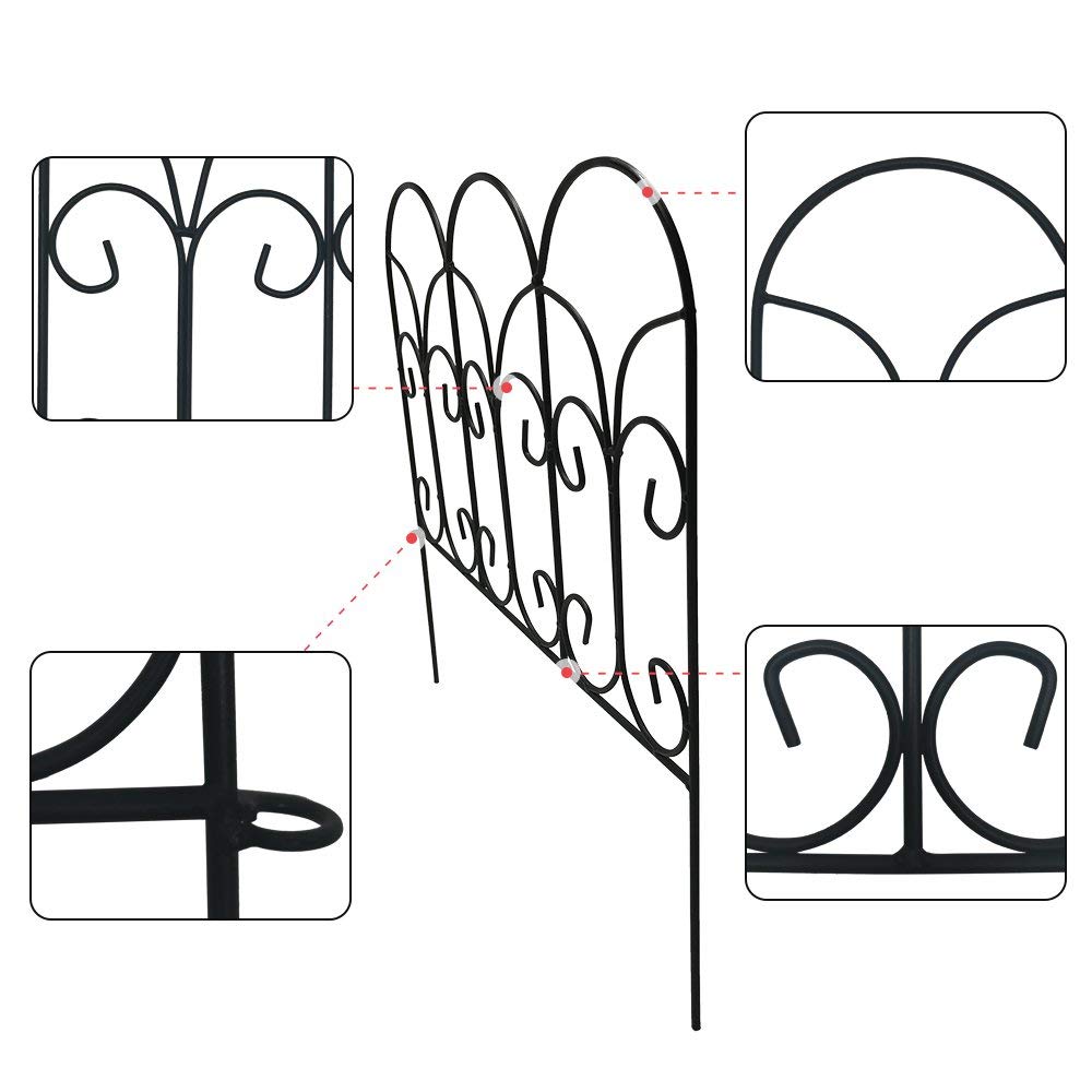 SIZE & RUSTPROOF MATERIAL: Decorative metal garden fence decor with single panel size 18″ high x 18″ wide, 5 Panels in total. This metal fence panels for front yard is made of black Iron with vinyl pvc powder coated surface will enable you to use the garden fence outdoors durably; the decorative black iron garden flower bed fencing animal barrier is made of rustproof and weather resistant metal material.