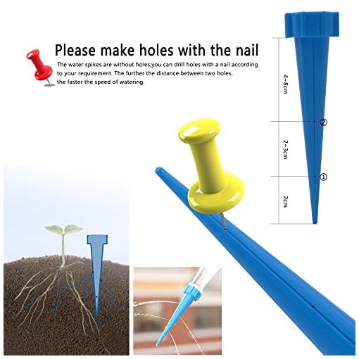 Note: The water spikes are without holes,you can drill holes with a nail according to your requirement. The further the distance between two holes,the faster the speed of watering.