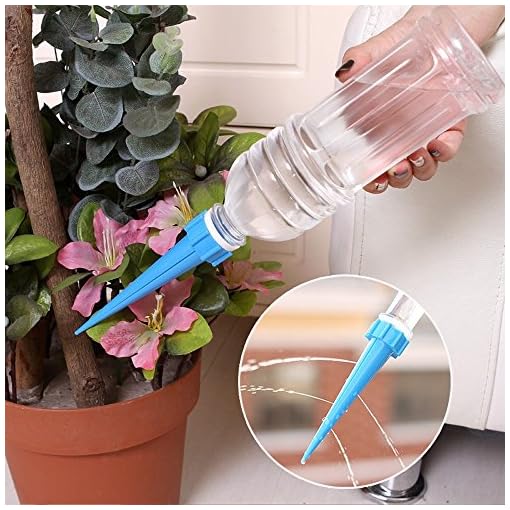 – Simply screw a spike onto a full bottle of water, then insert the pointed end directly into the soil near a potted a stalk.
