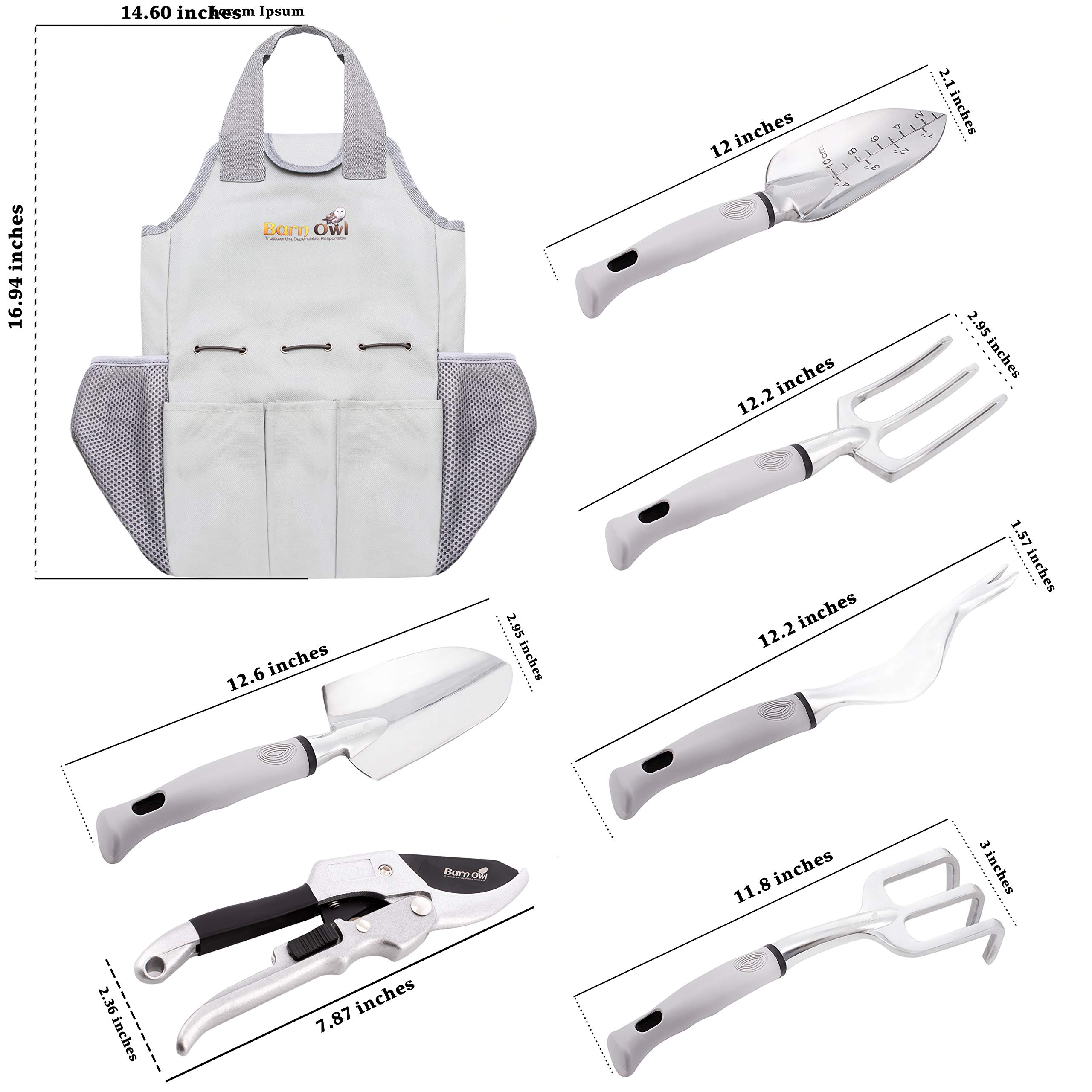 Barn Owl Stainless Steel Garden Tools 9 Piece Gardening Set with Heavy Duty Shear Non Slip Handle and Storage Tote Bag
