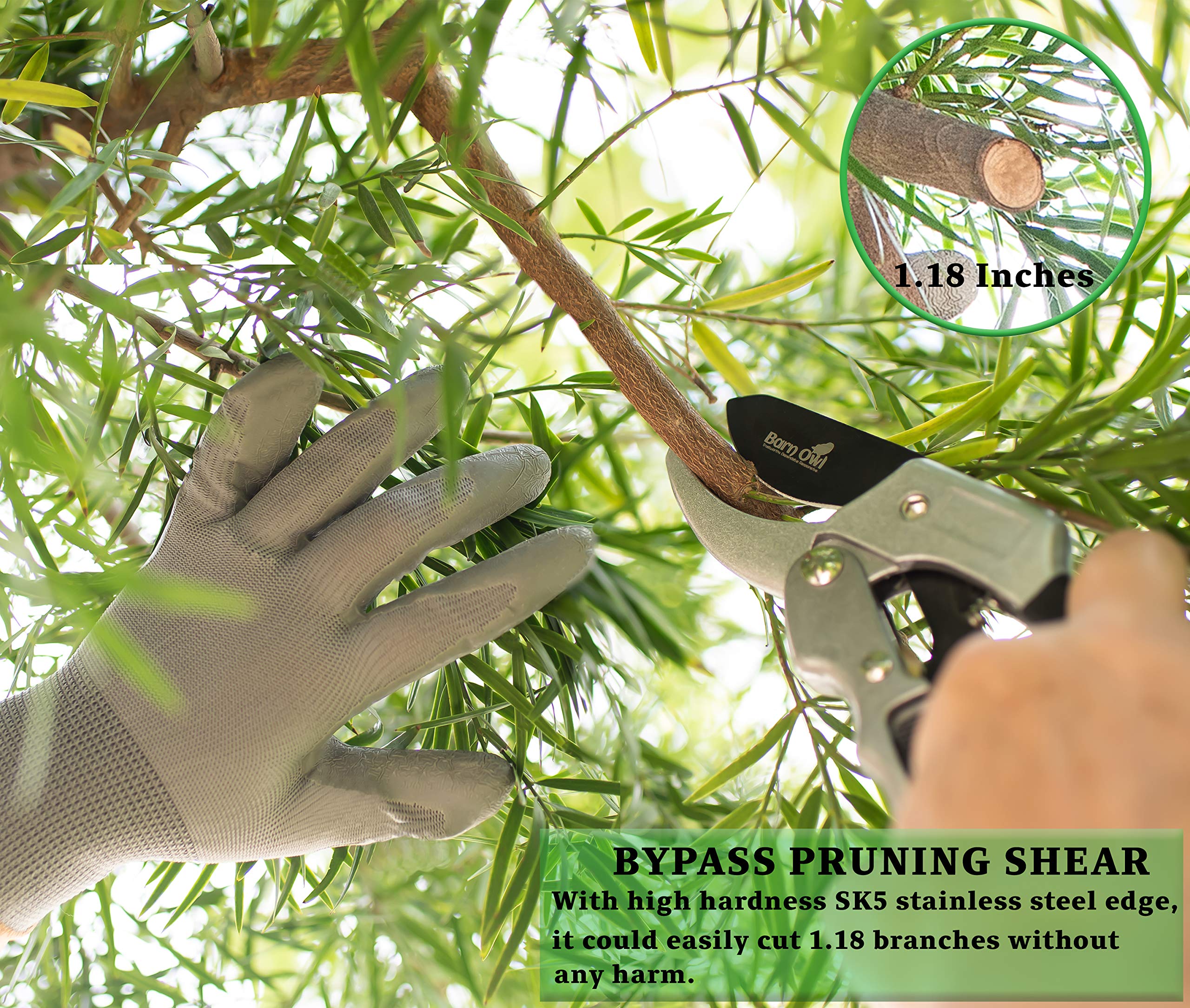 Barn Owl Stainless Steel Garden Tools 9 Piece Gardening Tools Gardening Kit with Heavy Duty Shear Non Slip Handle and Storage Tote Bag for Gardeners.