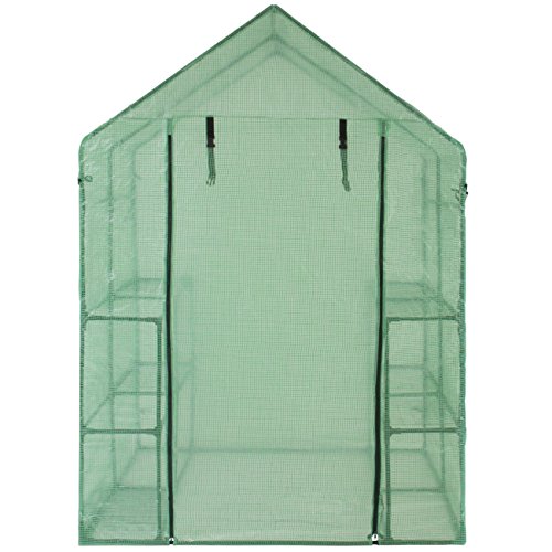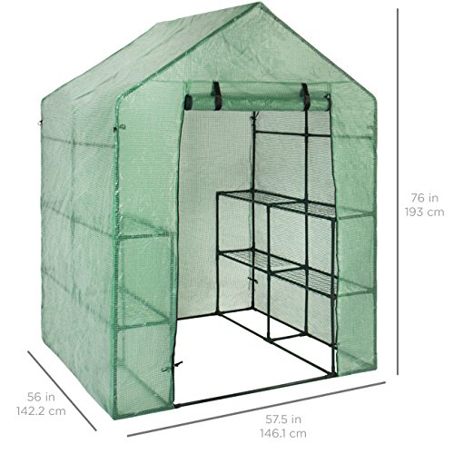 Grow plants in a healthy environment year-round with this spacious yet compact greenhouse. Crafted with a zippered roll-up door and walk-in design, this home for plants makes for convenient maintenance. It’s also built with 8 wired shelves, giving plants the space needed to breathe and grow. Your gardening routine shouldn’t have to change with the weather.