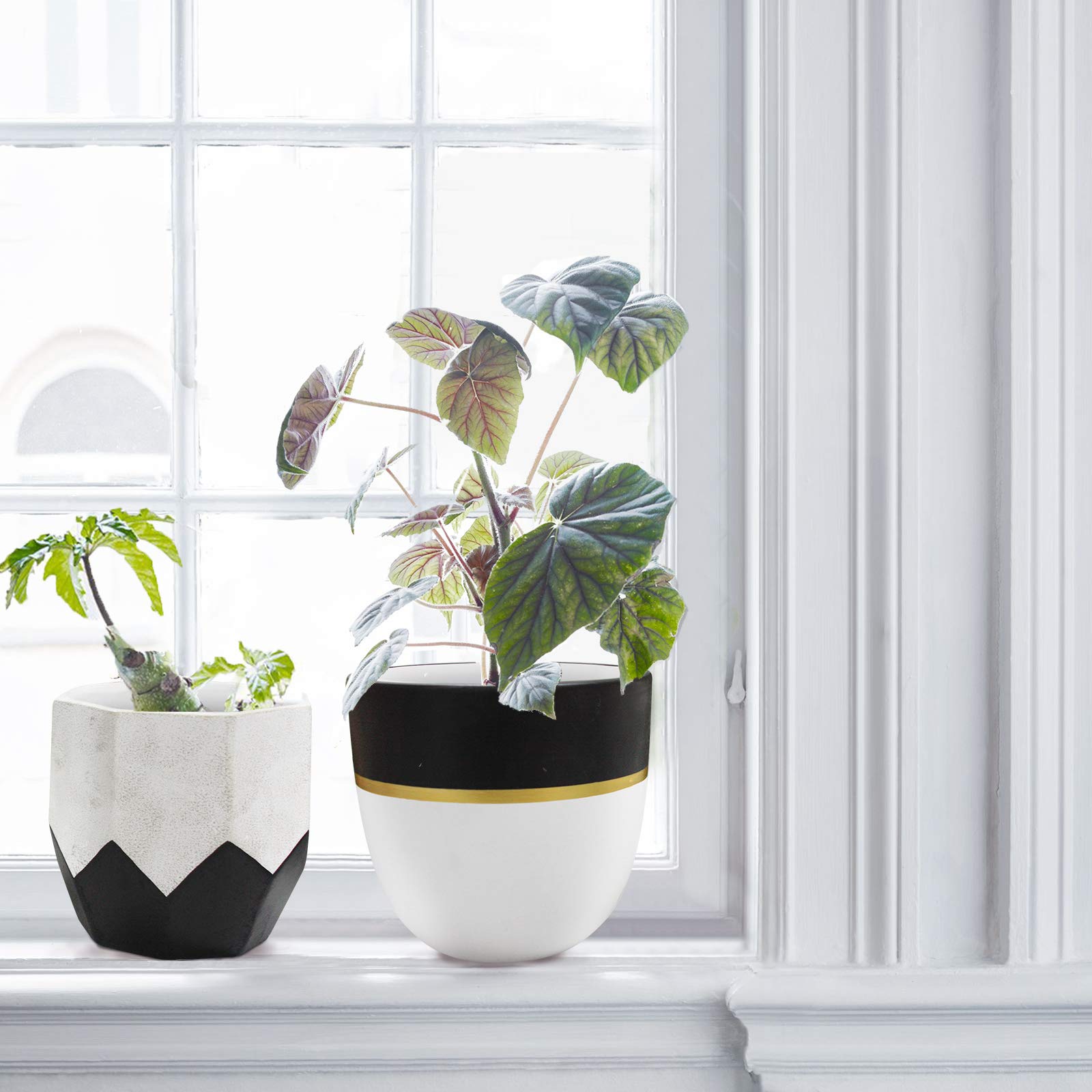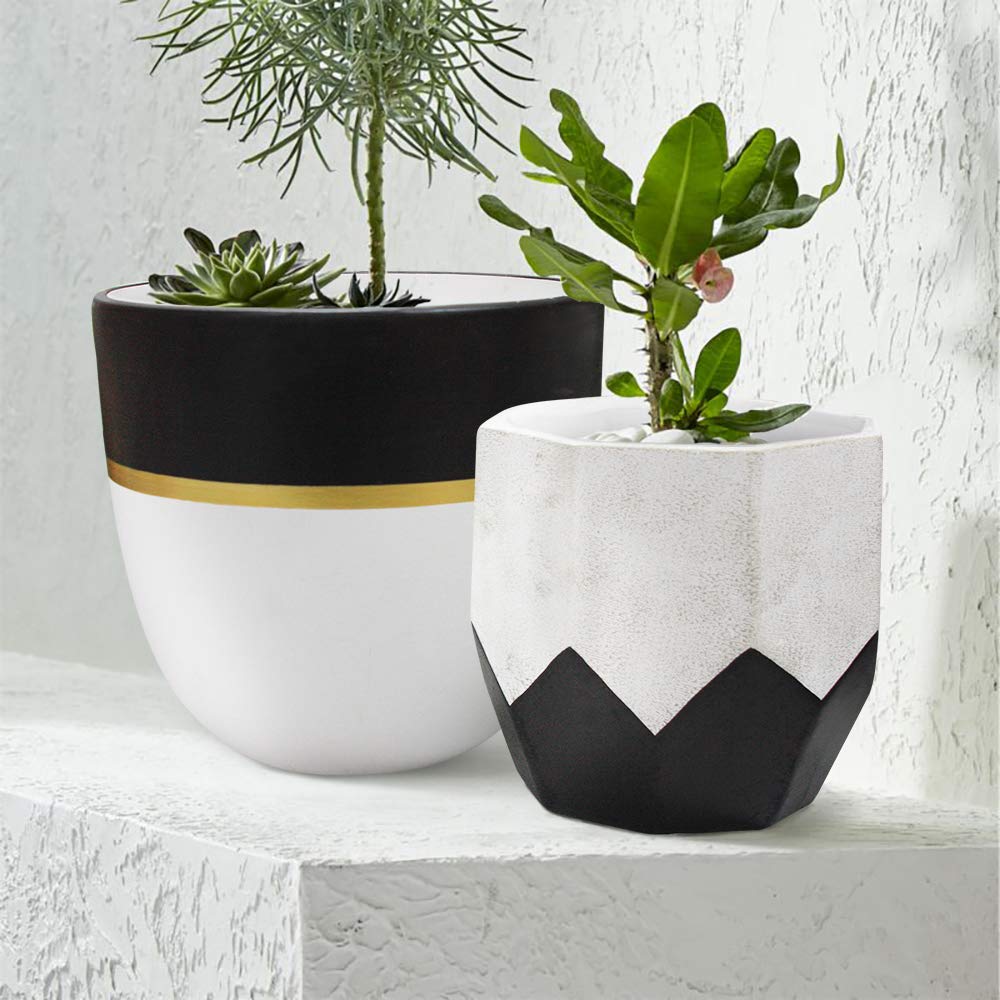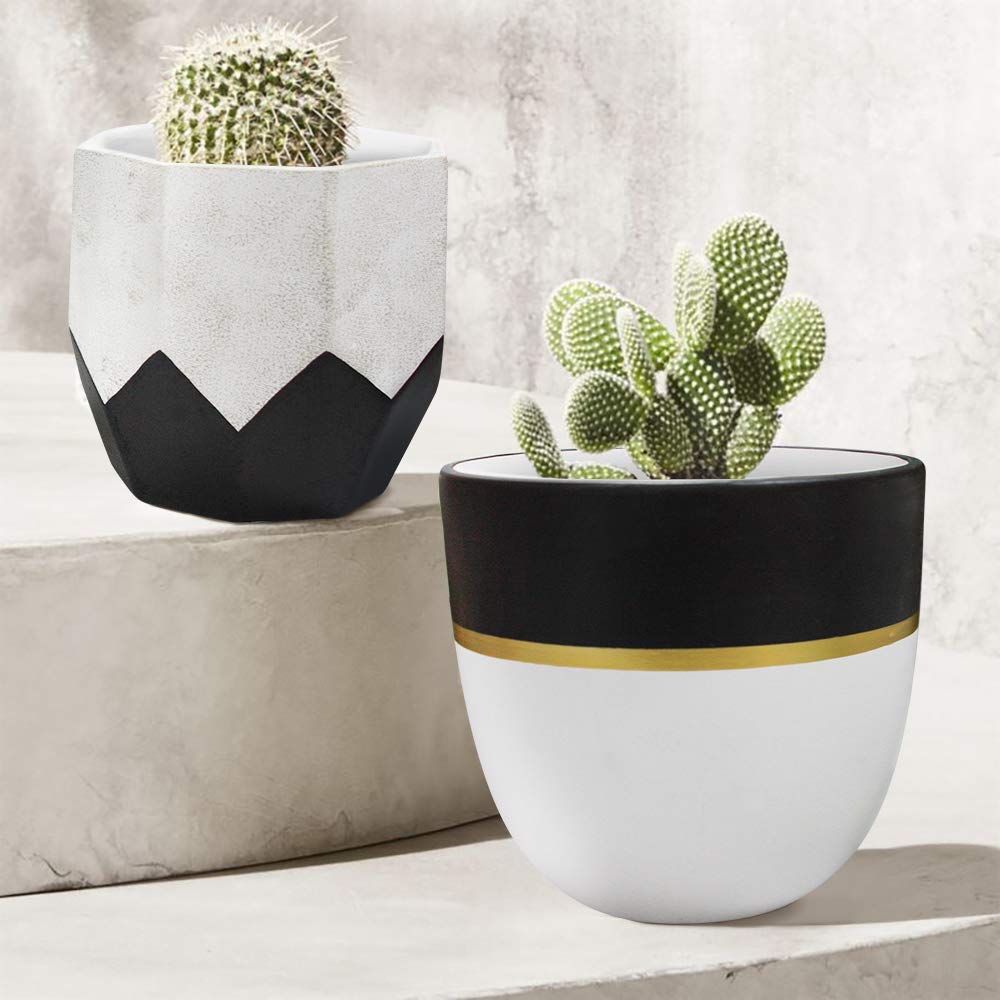 【GEOMETRIC DESIGN】Featuring geometric pattern, classic black and white palettes, gold line detailing, this appealing flower pot allows you to display greenery in an elegant and chic way. The paint of octagon pot is purposely scraped off for a distinctive distressed look.