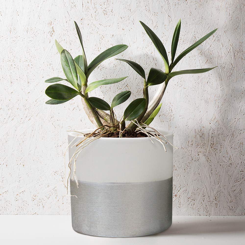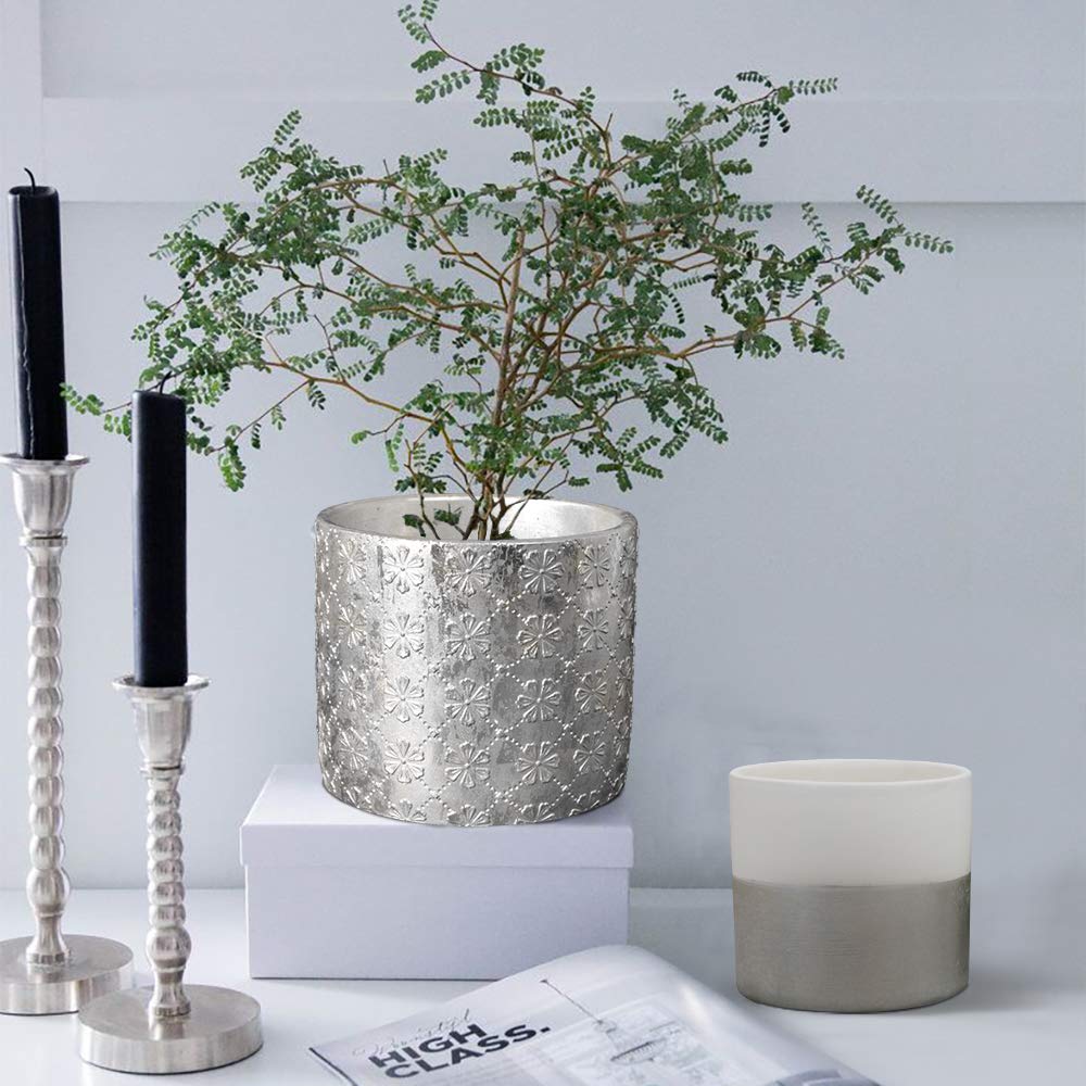 Unique silver foiled craft, floral embossing design, neutral palettes, premium ceramic and cement, all making it a stand out in your home decor. This plant pot is built to grow small or medium plants, like snake plants, succulents, aloe, which adds a verdant look to your abode. The set of stylish cylinder plant containers are in harmony with each other in design and style. Plant with all sorts of plants in this attractive planter set.