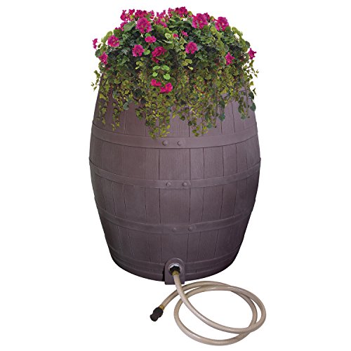INTEGRATED PLANTER & FLAT BACK DESIGN – The top of the rain barrel has an integrated planter that allows you to uniquely decorate your rain barrel and use its water to grow your plants! A built-in weep hole inside the planter provides proper drainage and prevents root rot. This rain barrel also features a flat back design to sit closely to the side of your house for an attractive appearance.