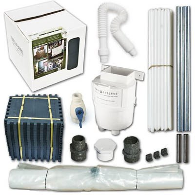 Features. Rain barrel with diverter kit. 16 panels liner. Complete diverter. High volume spigot. Connector kit. Snap together assembly.. Capacity – 100 gallon. Color – Gray. Dimension – 21 x