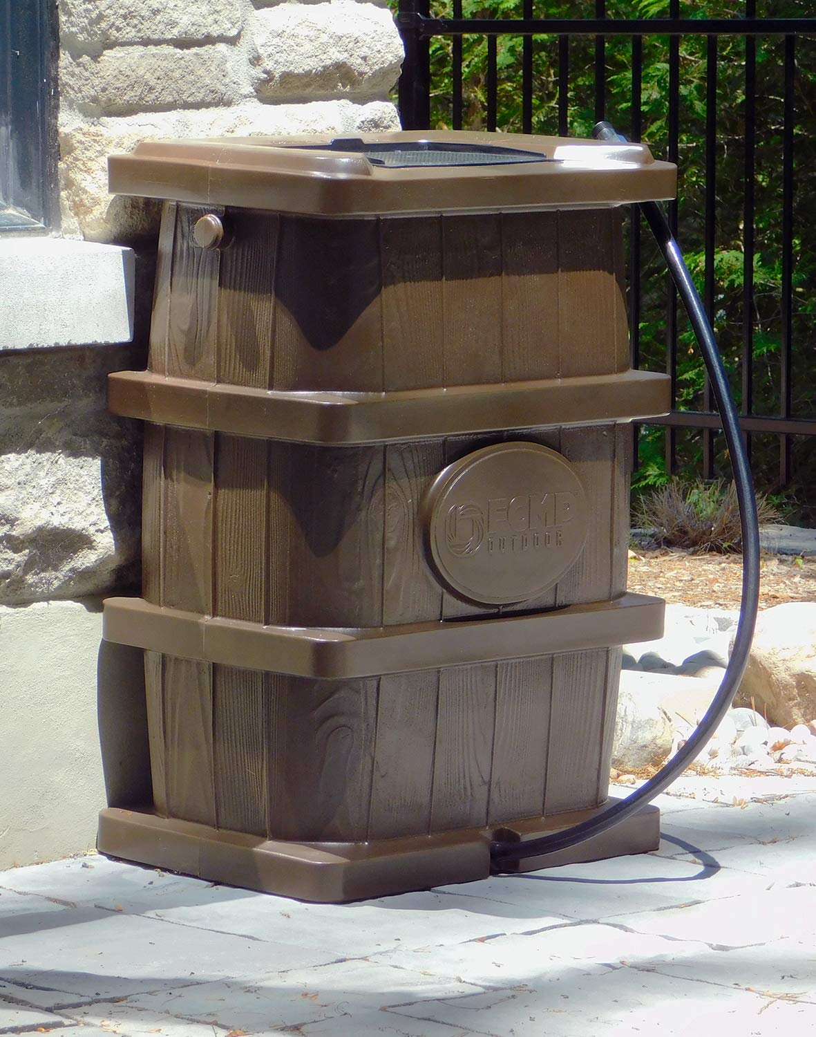 FCMP Outdoor Wood Grain Rain Barrel, Brown