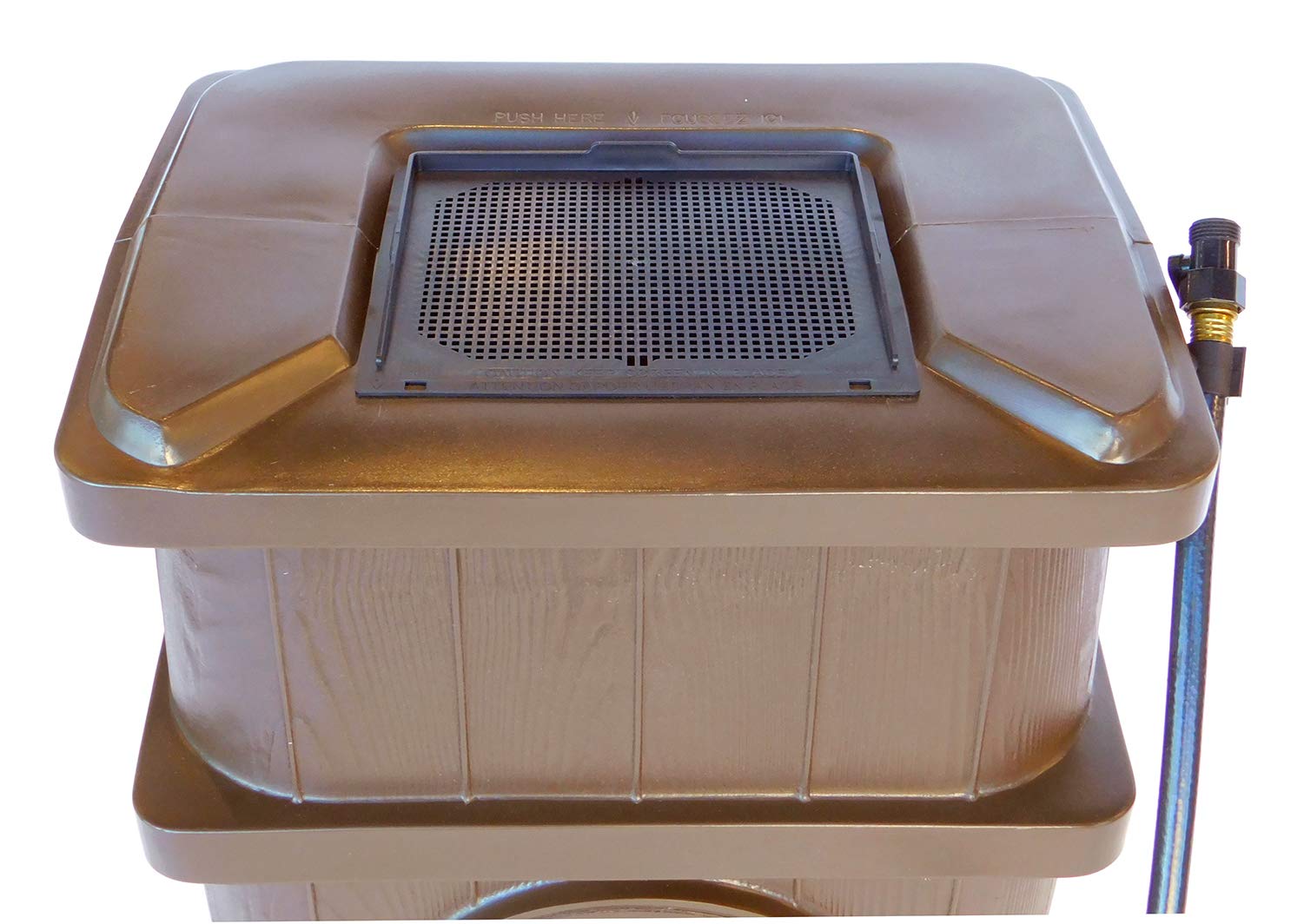 The aluminum mesh screen keeps out debris and mosquitoes to keep the water clear and keep your family safe from insect borne illnesses while the safety rib IN the top of the barrel keeps it child and pet safe.