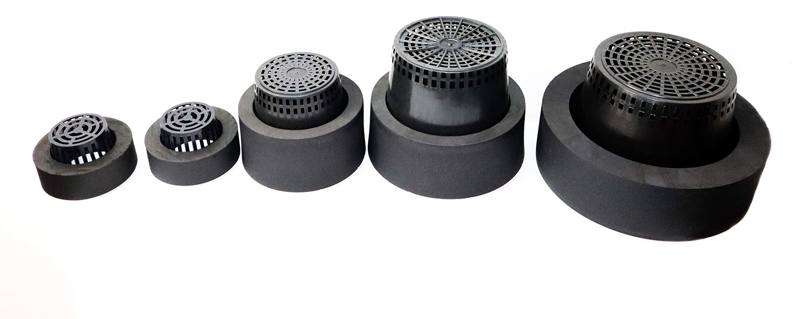 Set of 5 High Quality Long Lasting – UV/Sun Durable – Thick PE Foam Floating Pond Planters with Heavy Duty durable mesh bottom baskets.