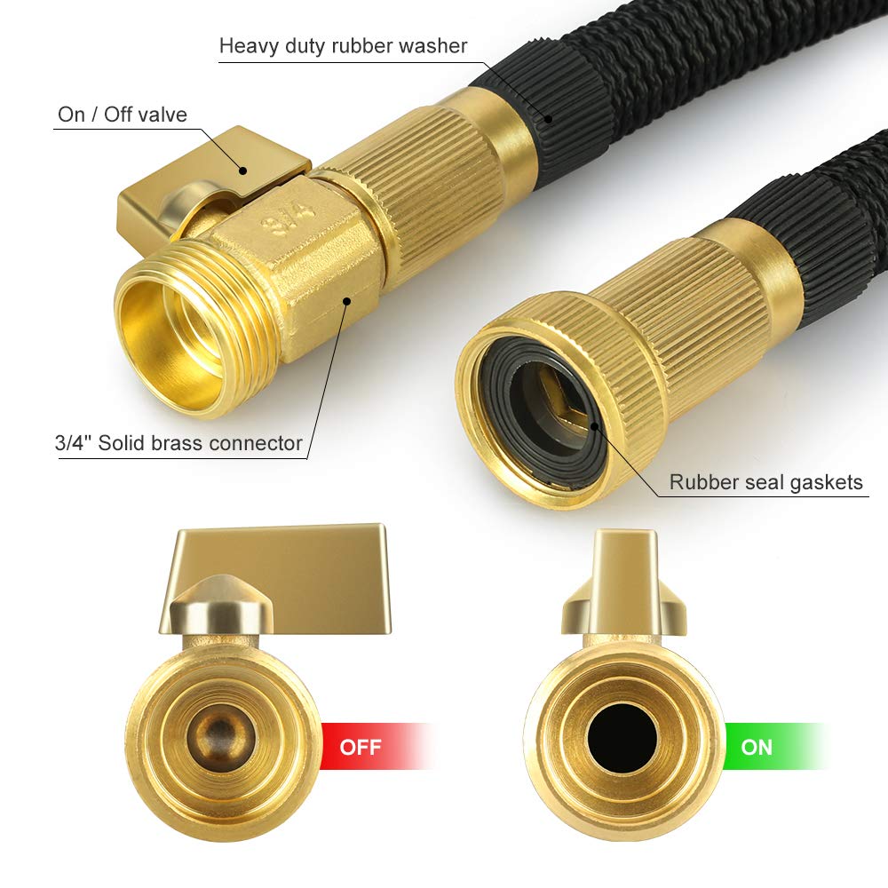 SOLID BRASS CONNECTOR: 3/4 inch (1.9 cm) brass fittings can prevent rust and be more durable. Controlling knob let you more convenient to adjust the water. 3 extra rubber gaskets can provide no-leak connection every time.