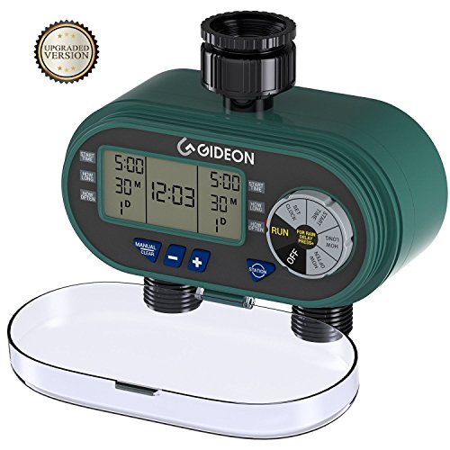 The Gideon Electronic Dual-valve Hose Irrigation Water Timer is designed to make controlling your garden watering simple, easy and extremely flexible; so that it meets your precise customized needs.