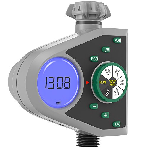 BACKLIT LCD SCREEN – Features a large, easy to read, LCD screen, displaying amazingly detailed information; such as when next watering cycle will begin, duration remaining for current watering cycle and much more. Screen is backlit enabling to set the water timer schedule at night.