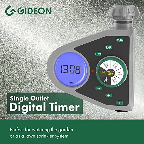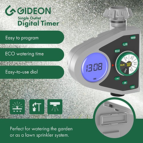 The Gideon Electronic Single-valve Hose Irrigation Water Timer is designed to make controlling your garden watering simple, easy and extremely flexible; so that it meets your precise customized needs.