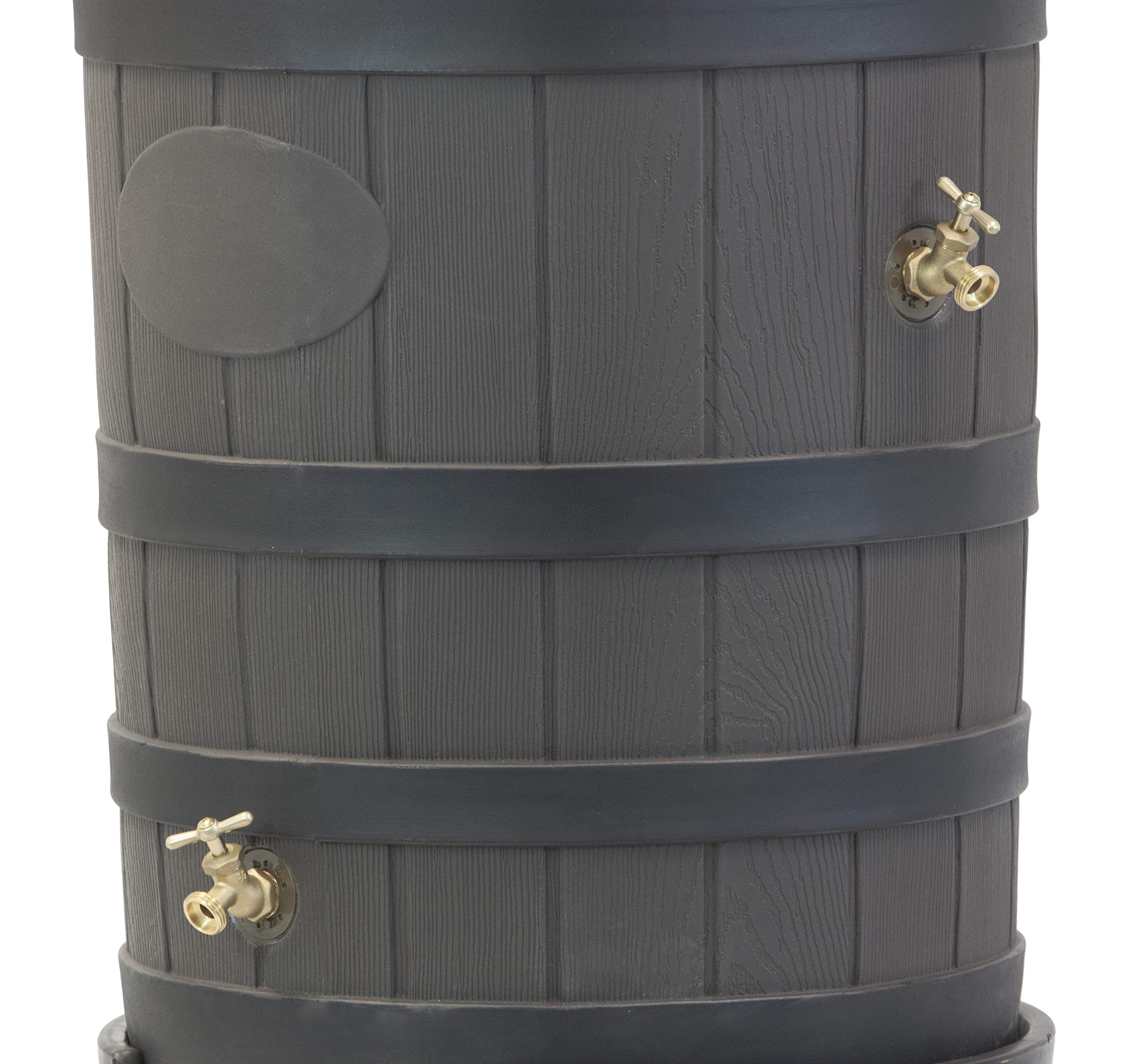 The American Oak is a 50 gallon rain saver that comes packed with features. Immediately, you can tell that this is a high quality barrel. The deep wood grain texture