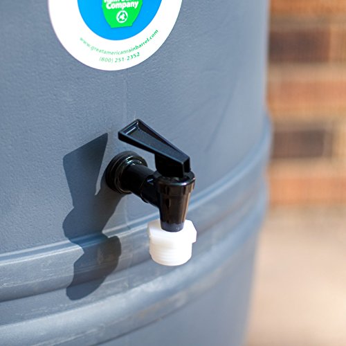 Rain happens. Rain is free. A 60-gallon rain barrel can fill up with less than .25 inch of rainfall. Rain barrels can go a long way in offsetting your domestic water needs, including gardening, car washing, and pool topping. In turn, the burden on the local water system or your well will diminish and ultimately save you money. Collecting rain water has become as typical as recycling bottles, cans, newspapers, and composting. Link two or three barrels together and you can save up to 180 gallons of precious rain water. The Great American Rain Barrel is built to be extremely durable with a wall thickness of 3/16″, resulting in a rigid, heavy duty rain barrel that will last virtually forever. Each UV protected polyethylene rain barrel is manufactured in the USA from a recycled shipping barrel that stands 39 inches tall by 24 inches wide and weighs 20 lbs. empty. The barrel comes complete with overflow fitting, drain plug, screw on cover, and optional threaded spigot, which can be positioned either 4 or 14 inches from ground level. This is an ideal position for use with a watering can. Attach your garden hose to the spigot and water your garden or lawn, even wash your car. We suggest raising the barrel off the ground for use with a regular garden hose as it’s gravity fed. Our rain barrel arrives with simple instructions for fast and easy installation. How to Link Barrels Together To save even more water, you can link your first barrel to a second, using a (shorter) piece of 3/4″ hose. Simply unscrew the upper plug (on the second barrel) and replace it with a second elbow. Attach one end of your hose to the overflow fitting (on barrel one) turning the fitting so that it is horizontal, and then attach it to the other end to the new elbow on the second barrel (which should also be turned horizontally). Attach your overflow hose to the second elbow (on barrel two) so that once that barrel has filled, you can direct excess water away from the foundation.