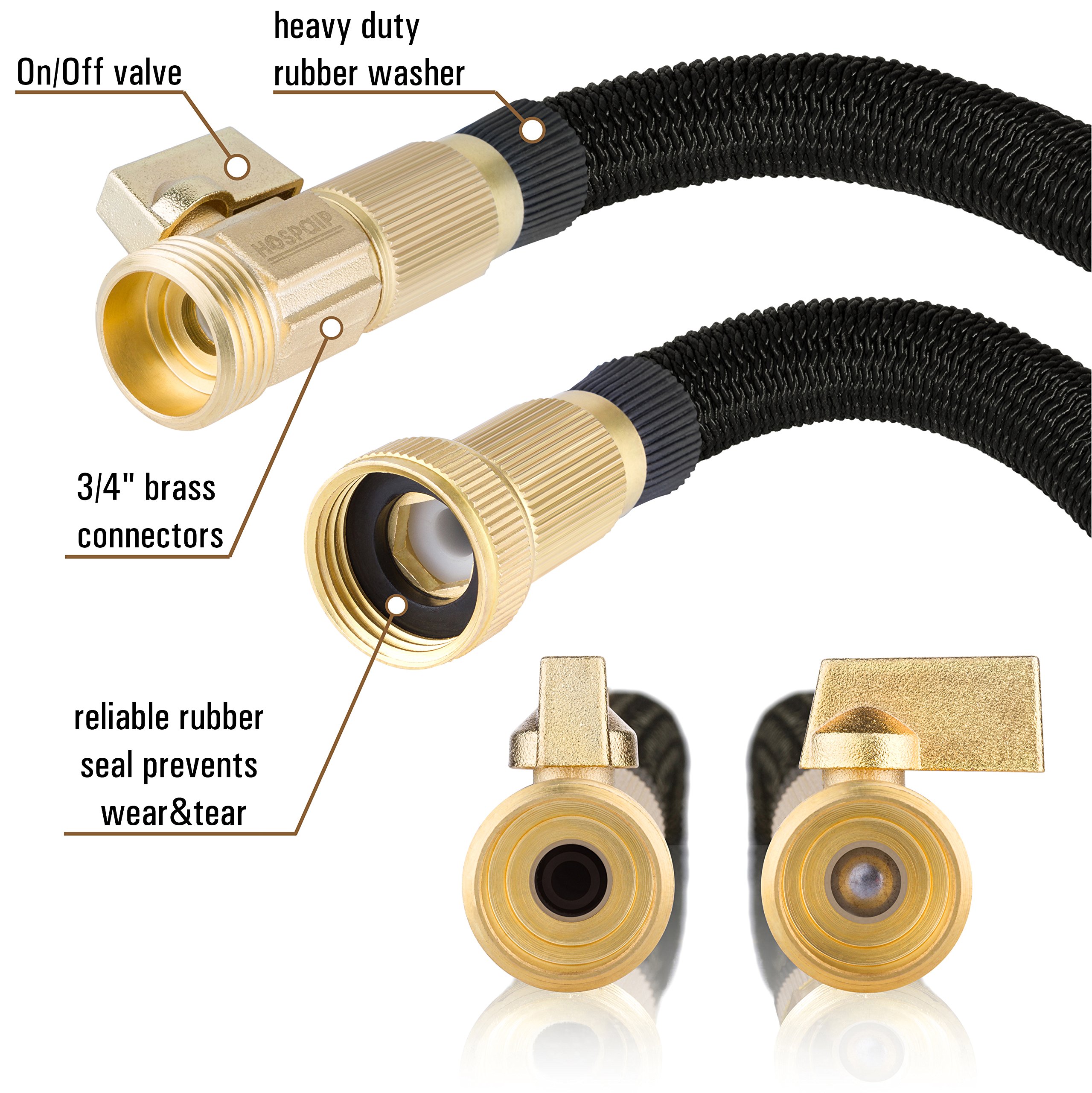 INCREDIBLE DURABILITY – no more leaks, tear or cracks: solid 3/4 Inches brass connectors, rubber washer, double latex pipe, sturdy on/off valve, extra-flexible 3750D polyester fabric cover; the hose can withstand water pressure 3-12 Bar and temperature 41℉-113℉ – this garden hose for long-term use