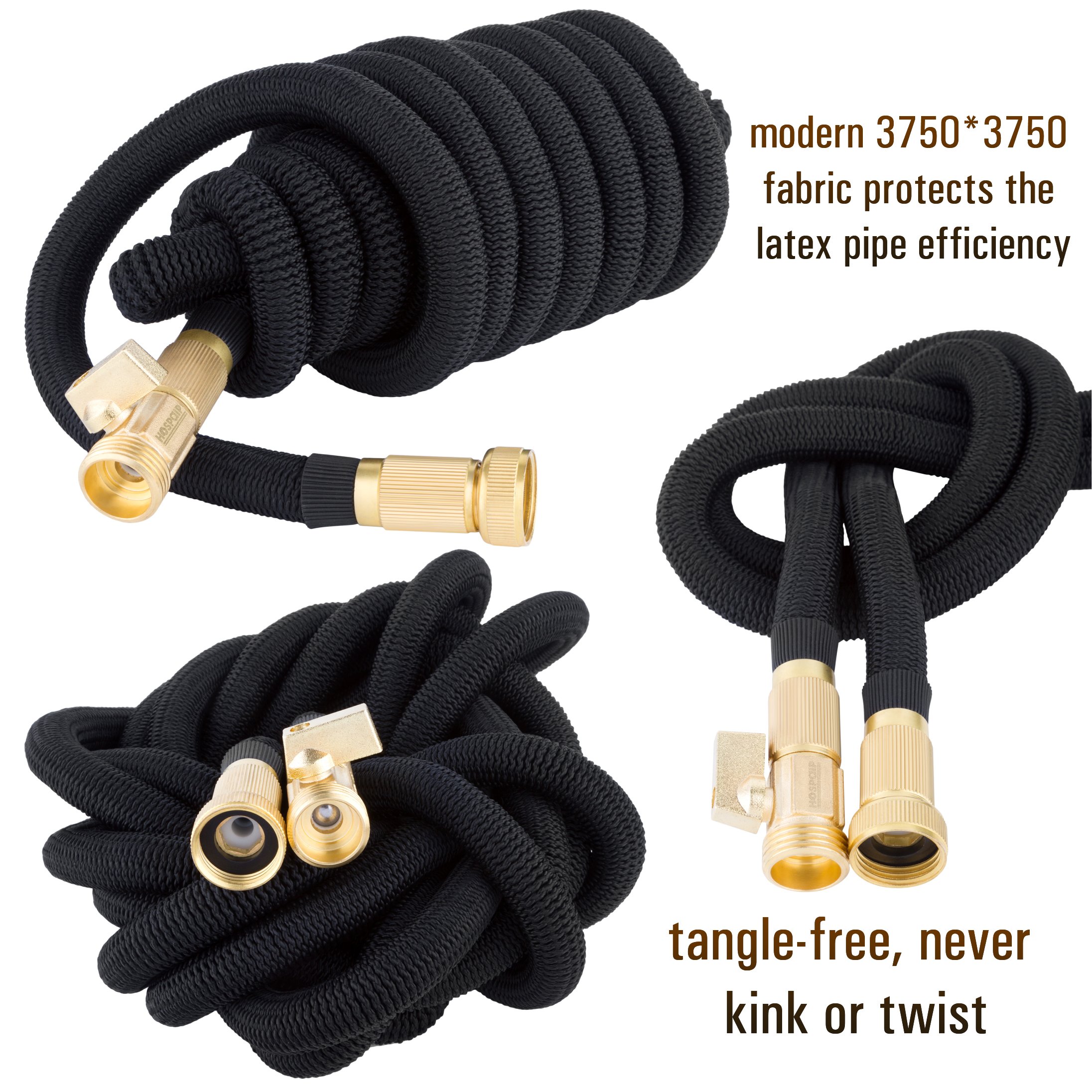 • extra-flexible 3750D polyester fabric cover protects the double latex inner tube & allows expanding of the garden hose up to 50 Feet – perfect size for outdoor watering