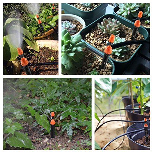 Water pressure: 29-58PSI for each 1/4″ line. One line could support 20 PCS sprinkler, if just open the top outlet of the sprinkler. And only could suport 5-8 PCS if open both of the outlets.