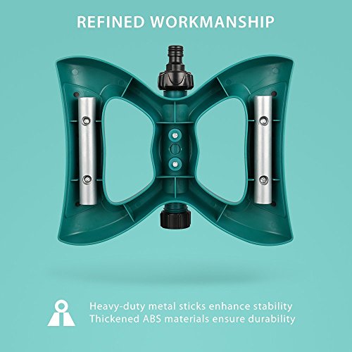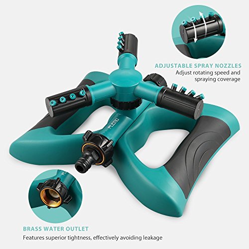GREAT COVERAGE: Three 360-degree rotating arms with 12 built-in spraying nozzles; one single sprinkler covers 50-75 m² (538-807 sq. ft) with international standard water pressure; connect 2 or more sprinklers for broader coverage