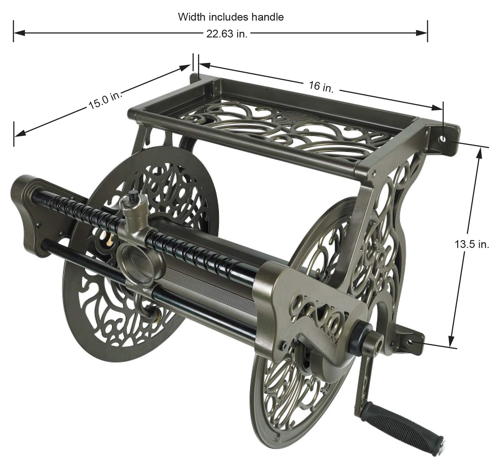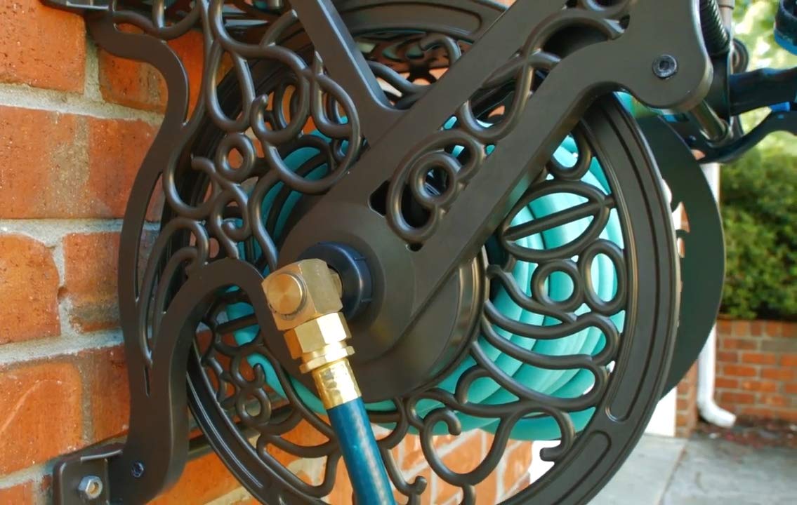 Liberty Garden Decorative Cast Aluminum Wall Mount Garden Hose Reel, Holds 125-Feet of 5/8-Inch Hose – Bronze