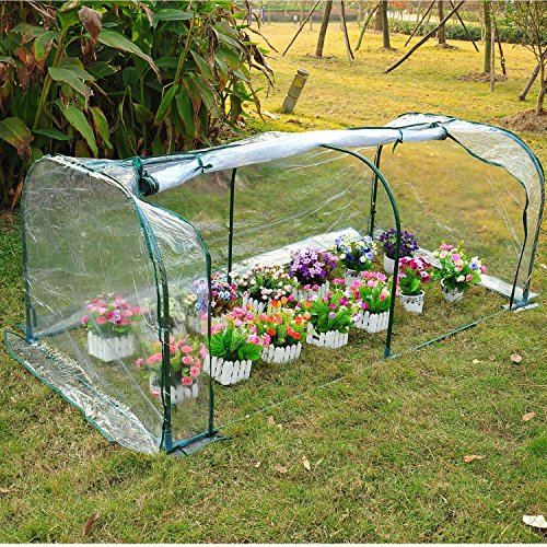 Note: All greenhouses are not to be left up all year round or during adverse weather conditions. Superior coverings built over a powder-coated steel frame, our open long “tunnel” style greenhouses are lightweight yet sturdy enough to ensure long-lasting use. Perfect if you want to reduce excessive heat or cold and keep your seedlings safe throughout the seasons. The zipper door allows for easy access and ventilation while it also can be sealed in to maintain the internal climate. Also, DIY Gardening design allows you to move these greenhouses from location to location easily. Features: • Versatile long greenhouses in”tunnel”style, sturdy but lightweight • Mini and portable, Ideal to manage your backyard gardening • Offers plenty of room for plants growth • Protects plants from extreme hot or cold weather • Extend your growing season • “Tunnel” style, transparent cover • Made of PVC cloth covering over a powder coated steel frame • Zipper door allows easy access and great ventilation for plants • Durable frame allows easy mobility to change the location • Heavy duty powder coated steel frame, rust-resistant and corrosion-resistant • Durable plastic connectors ensure extra safty • Easy to assemble and store away (with instructions) Specs: • Material: PVC Cloth,Steel,Plastic Connectors,Zippered Doors • Color: Light green • Dimension: 7’L × 3’W × 2.6’H • Elbow pipe size: Ø16 × 0.45mm • Straight pipe size: Ø16 × 0.3mm