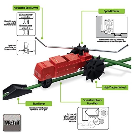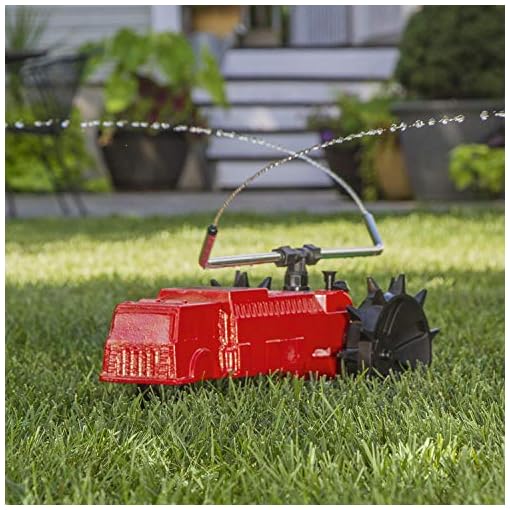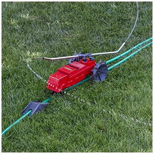The lawn rescue traveling sprinkler provides the perfect solution for watering an extra-large area. Set a custom watering path with your garden hose & adjust the speed to easily water The entire yd. The sprinkler propels itself along the path to evenly water up to 13, 500 sq. ‘. Of lawn. When finished, the automatic shut-off will stop the sprinkler. Made of heavy-duty cast iron, this sprinkler is built to last, adding life to your lawn for years to come.