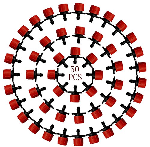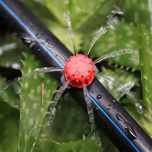 Different Quantity Adjustable Irrigation Drippers Sprinklers Emitter Drip System Irrigation Drippers Material: Plastic Color: Black and Red Great for watering potted plants Has a 1/4-inch barb