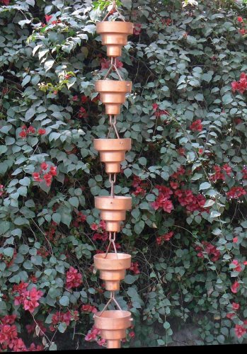 Monarch Rain Chain’s Pure Copper Umbrella Rain Chain is a vision of beauty and function combined together with the spectacular assembly of 17 copper Umbrella cups linked together with triangular links. With an upturned umbrella position, it possesses a charming design that is sure to capture on-lookers attention. Pure copper Umbrella Cup Rain Chain is 8.5 ft in length inclusive of the triangular gutter attachment piece.