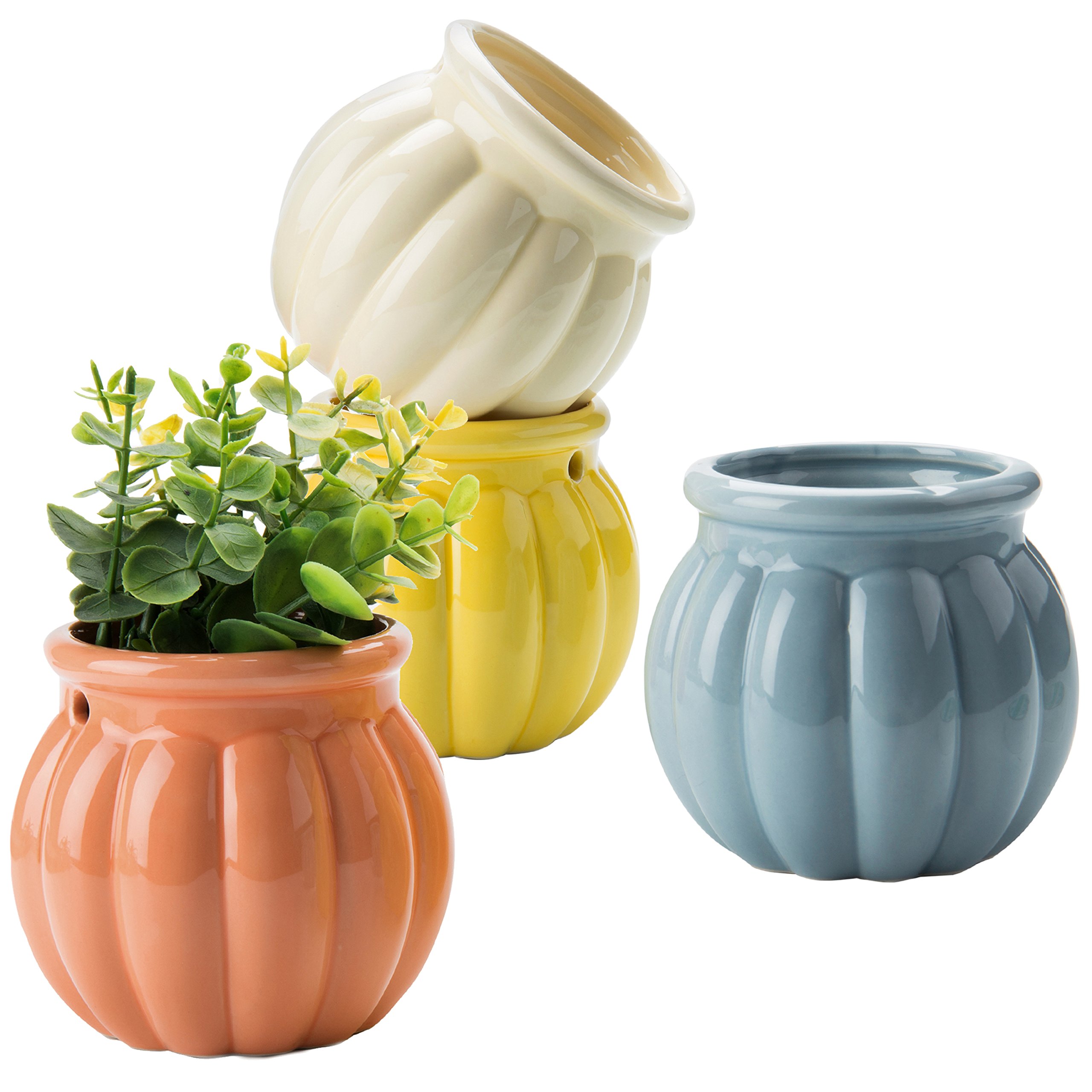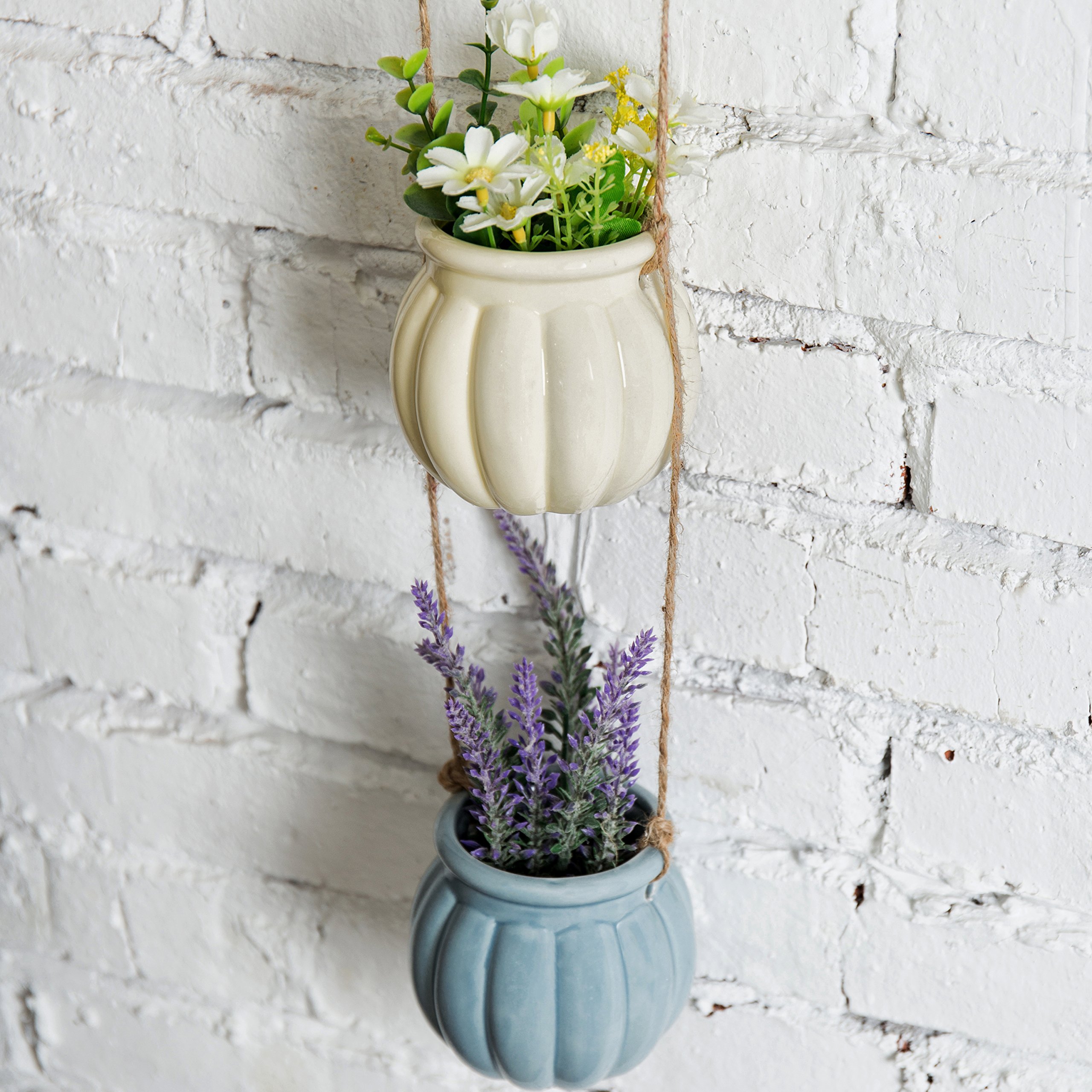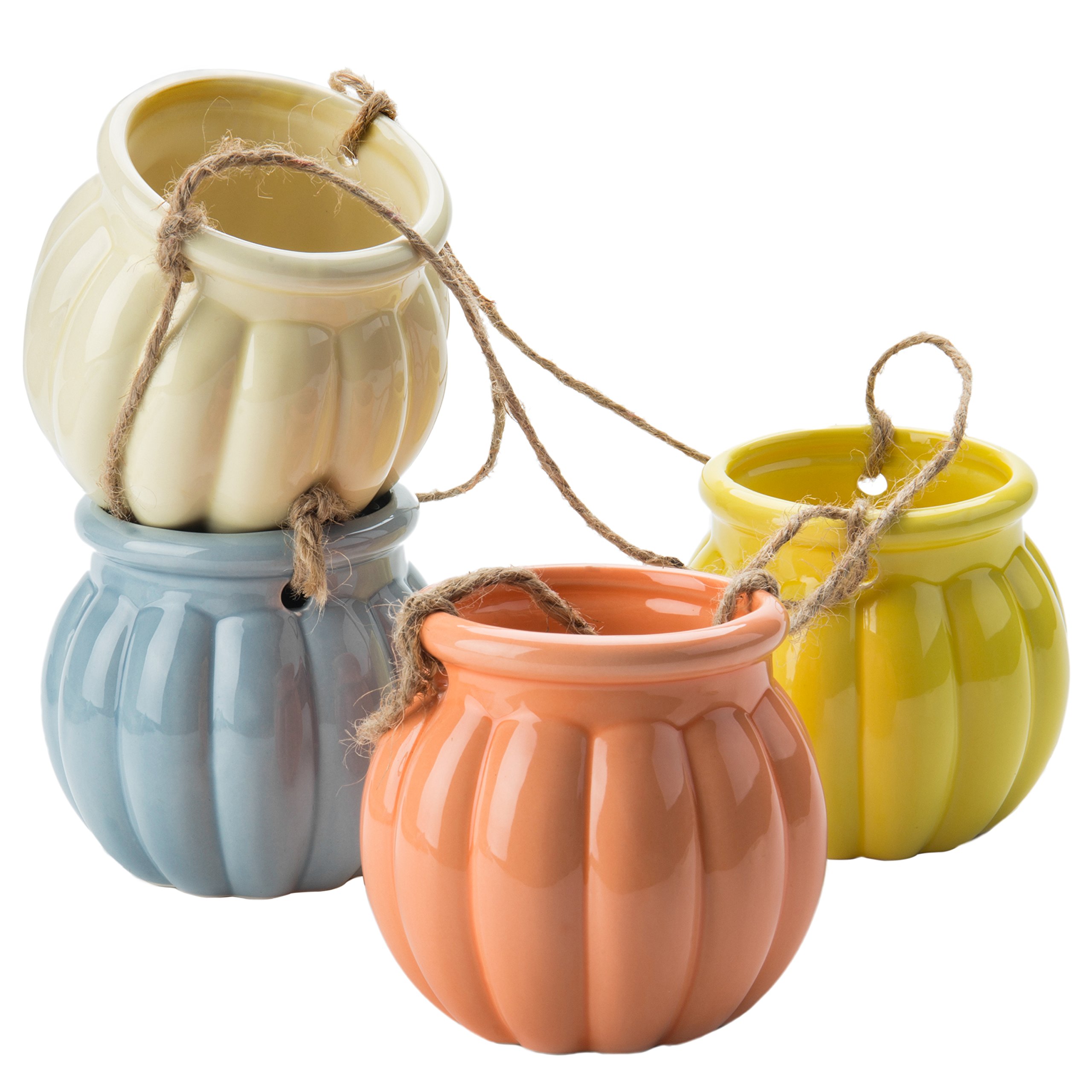 A mix of soft pastel colors gives this hanging planter set a casual and eclectic look perfect for creating a relaxing ambiance in outdoor entertaining spaces. Hung from a veranda or trellis, this set of cauldron-shaped pots adds dimension and color while providing a place for planting anything from herbs or succulents to hanging flowers. The solid bottom without drain hole allows for worry-free indoor use, making these planters a versatile decorative accent for inside or out.