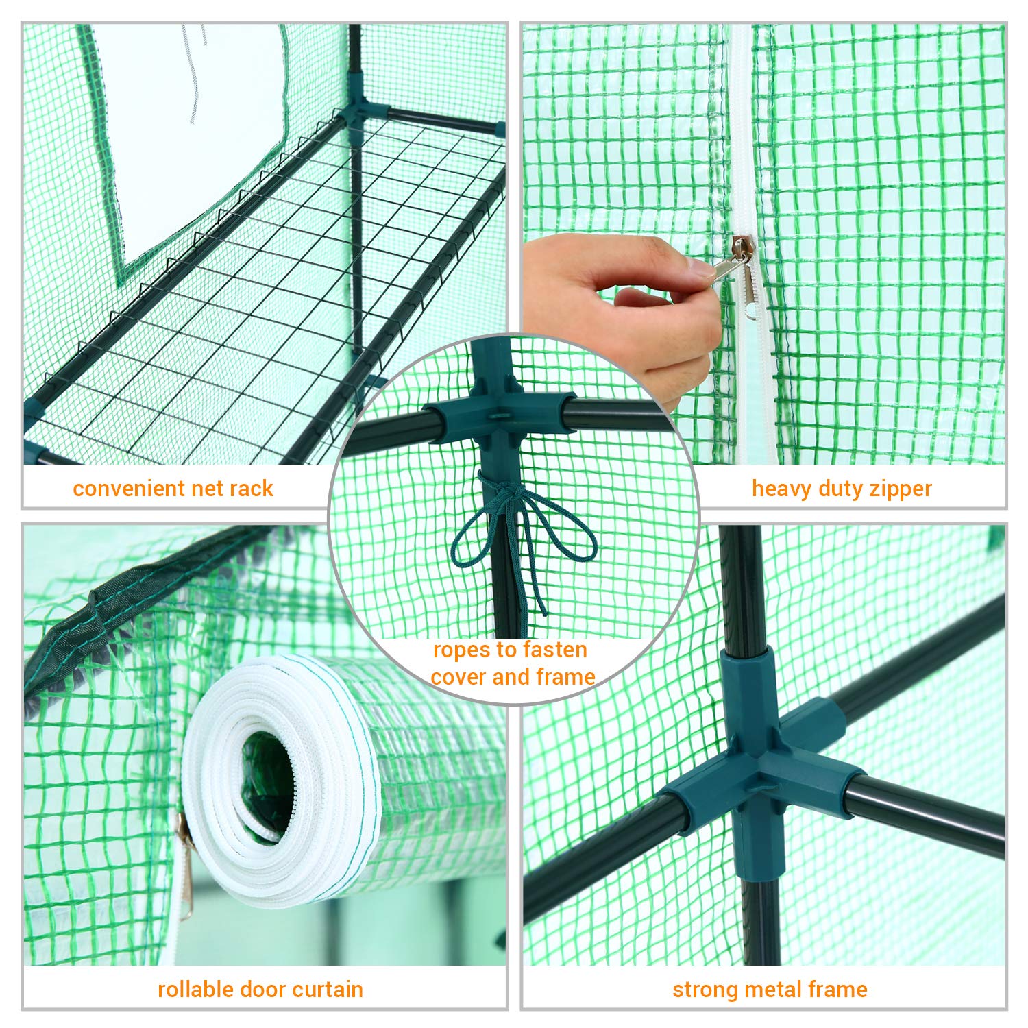 🍀 Warm yet Ventilated: With the zippered roll-up door and 2 Velcro side windows, you can regulate external airflow to keep the plants warm and provide better air circulation for the plants, and works as observation window that makes it easy to peek inside