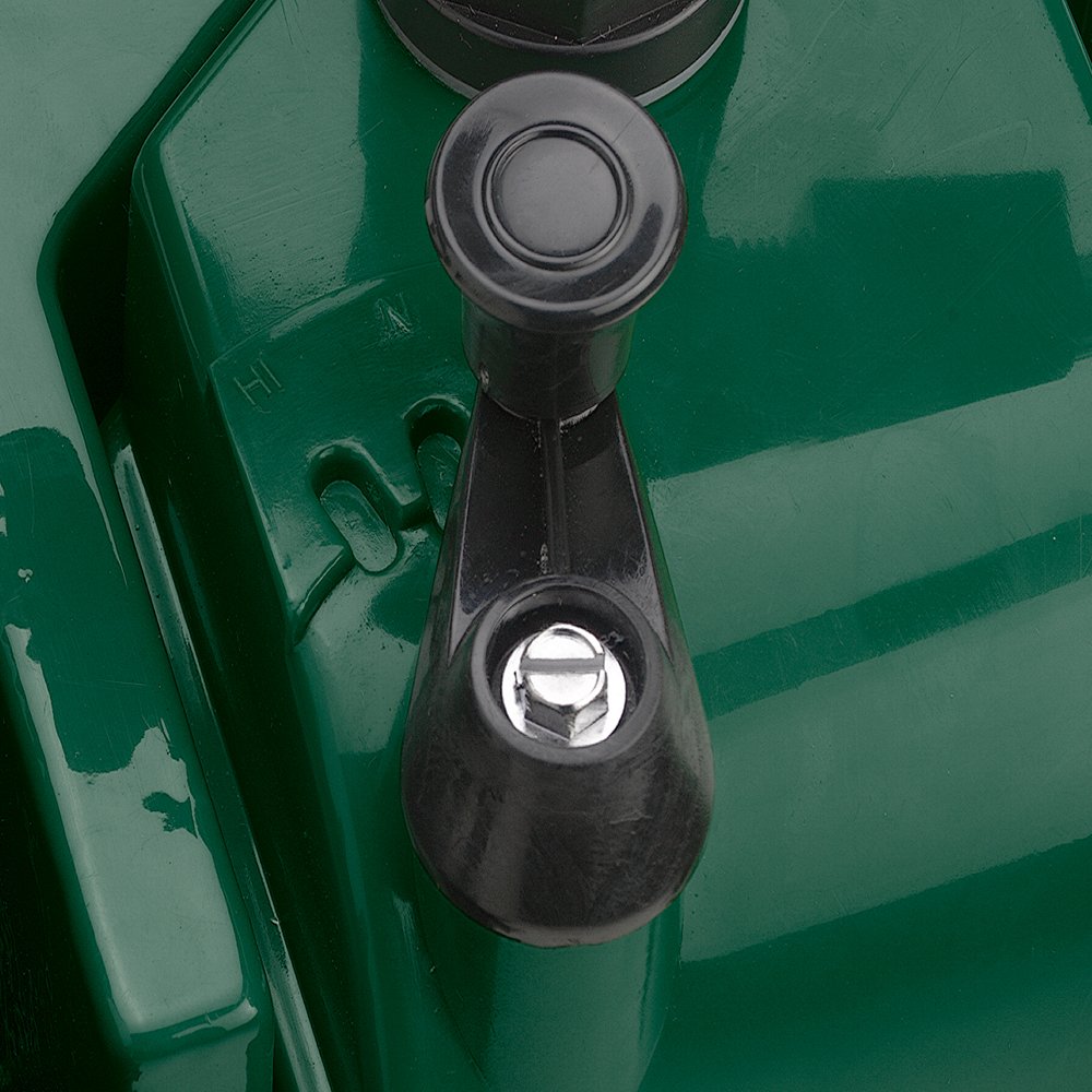 THREE POSITION SPEED CONTROL: Select from high, low, or neutral stationary settings to control the saturation level of your lawn.