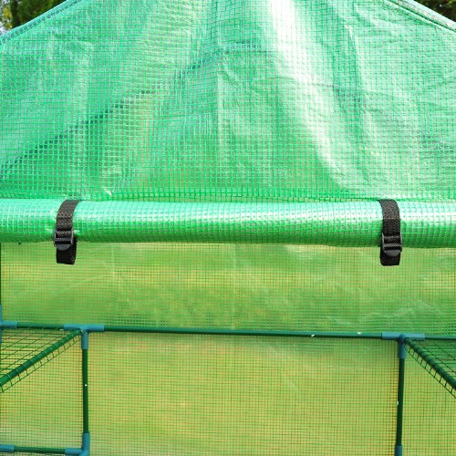 Are you a home gardening enthusiast looking for a way to stay in the soil year-round? This Outsunny portable walk-in gardening greenhouse offers the vital protection your plants crave without the need to spend exorbitant amounts of money. The plastic mesh cloth cover keeps your crops at the perfect temperature and is reinforced by a sturdy powder coated steel tube frame. The tent-like structure allows you to place the greenhouse over an existing area or to start a new gardening spot inside. The zippered door allows a seal to be maintained while also providing quick and easy access to the inside. The perfect solution for the true gardener out there that wants to keep their plants healthy throughout the entire year.