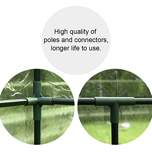 Transparent PVC cover— 100% Waterproof, UV protection, maximum Solar Performance, keep the greenhouse inside warmer and help to extend plant growing seasons. Also mini size greenhouse, easy to move outside or inside in winter. Easy and portable to set up or move.