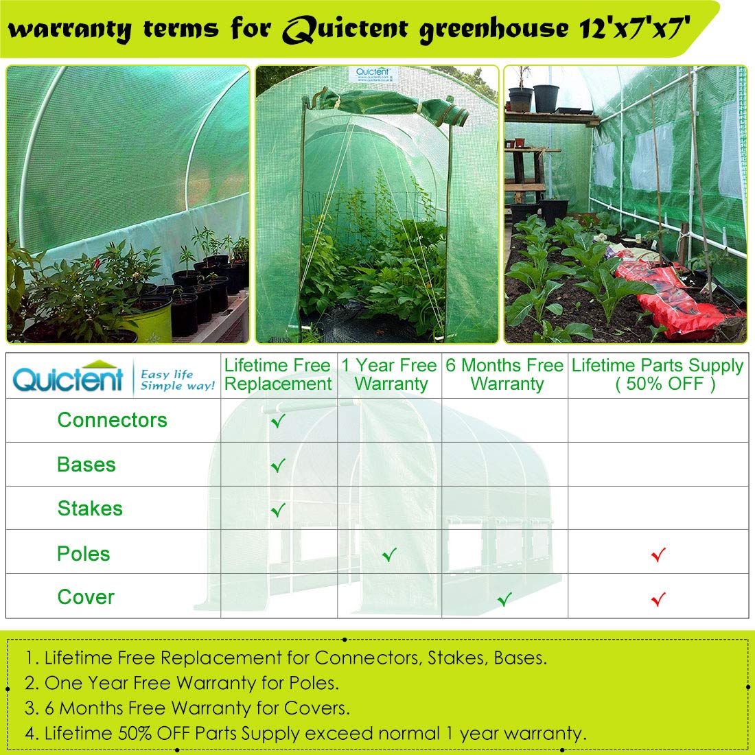 Worry Free Warranty – Quictent has been doing tents business since the early 21st century. We believe in our product quality, so we back our greenhouse with worry free warranty (as pictured) and timely, friendly after-sales service.