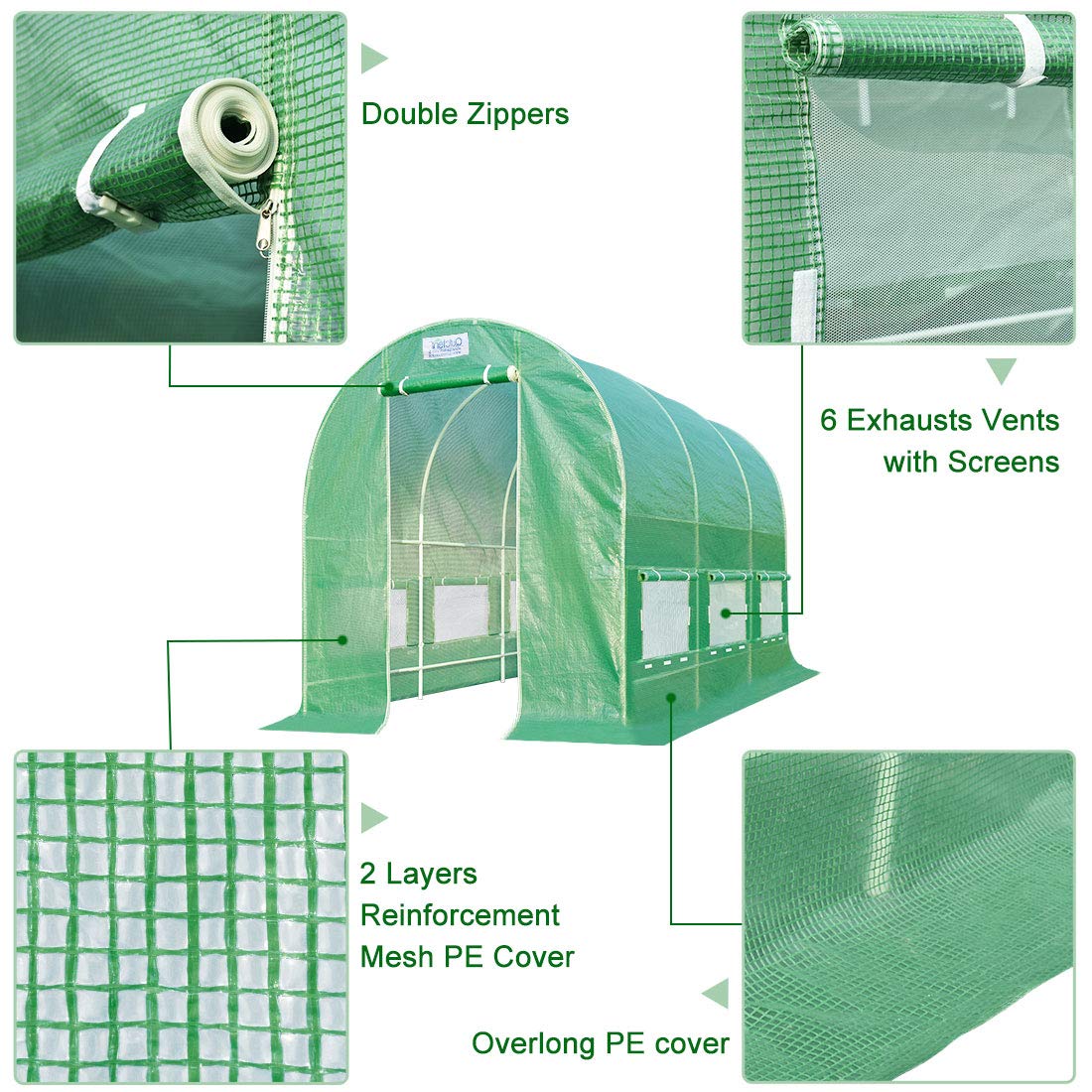This high quality, large, walk-in greenhouse is crafted with a powder coated steel frame and middle rails for additional stability against the elements. The one-piece rip-stop cover is UV protected and features a zippered front door and 6 side vents for enhanced ventilation. Great for starting or protecting plants and flowers, it’s made of a 100% waterproof material. Transparent poly material allow maximum solar performance for plant, keep a warmer temperature. Reinforced PE leno make the cover stronger than normal poly material. Double zippered front door and 6 exhaust vents are designed for cross ventilation and venting on hot days. Full closed cover maintains high humidity levels for growing tropical plants, vegetables, fruiting plants and herbs.