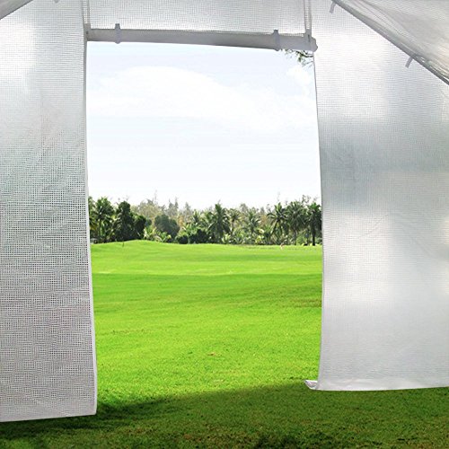 This high quality, large, walk-in greenhouse is crafted with a powder coated steel frame and middle rails for additional stability against the elements. The one-piece rip-stop cover is UV protected and features 2 zippered front door + back door and 5 side vents for enhanced ventilation. Great for starting or protecting plants and flowers, it’s made of a 100% waterproof material. Transparent poly material allow maximum solar performance for plant, keep a warmer temperature. Reinforced PE leno make the cover stronger than normal poly material. Double zippered front door+ back door and 5 exhaust vents are designed for cross ventilation and venting on hot days. Full closed cover maintains high humidity levels for growing tropical plants, vegetables, fruiting plants and herbs.