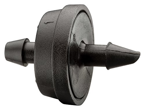Rain Bird CVD1010PKXS Drip Irrigation Dripper/Emitter with Built-In Check Valve, 1 Gallon Per Hour, 10-Pack. Unique spot watering dripper/emitter features a built-in check valve to prevent wasteful water drainage on slopes. This pressure-compensating emitter provides a medium 1.0 gallon-per-hour flow rate. Ideal for watering root zones of small garden and landscape plants, shrubs, and container plantings. Rain Bird’s pressure-compensating design ensures all plants receive the desired watering rate regardless of their position along the distribution tubing run. Uniform flow is delivered throughout a wide pressure range from 15 to 50 PSI. Barbed ends securely retain 1/4″ Drip tubing for a leak-proof connection. Self-piercing barb allows for direct insertion into the side of 1/2″ or larger Drip irrigation tubing, or use with 1/4″ tubing for positioning near individual plants. Simple to insert by hand, or for faster installation use one of Rain Bird’s insertion tools (sold separately): ET/1PK25S, HPUN1-1S, and HPTCX. Designed with large water passages and self-flushing action to help prevent clogging. Constructed of highly durable UV and chemical-resistant materials to assure long life. Rain Bird emitters are color coded to easily identify flow rate. Convenient plastic bag contains (10) black-colored emitters. Also available in: 0.5, and 2.0 GPH flow rates to customize watering of varying plant types and sizes. Rain Bird “The Intelligent Use of Water”
