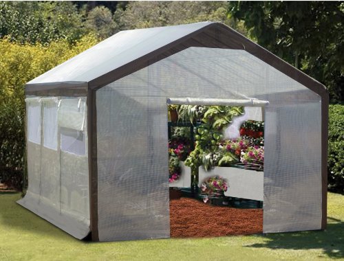 Spring Gardener Gable Greenhouse # IS 71020 is lightweight and portable even after assembly. Place directly over top of your garden area to get an early start on the gardening season. Wing nut assembly does not require tools and is easy to set up. Decorative powder coat finish matches valance on cover and walls. Sturdy, rust resistant frame and translucent fabric that is UV protected gives this greenhouse a long life. Roll-up windows allow for cross ventilation and climate control and are equipped with insect netting to help control pests that can damage young plants. 10’W x 20’L x 9’H