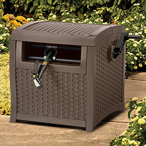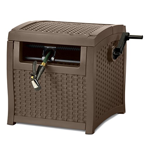 Keep your hose safe and in good condition with the Suncast 225 ft. Resin Smart Trak Hideaway Hose Reel Box – Mocha Brown. With its contemporary design that completely conceals your hose, this reel features a slide track design which makes winding and unwinding a hose easy. Crafted from resin, this reel will not fade, crack, warp, or split and can be kept outdoors year-round. All resin construction with molded woven panels for a decorative you’ll love. Suncast is known for its high-quality, low-maintenance storage products and accessories. Organize gardens, back yards, garages, basements, and more. Suncast’s full line of products includes everything from storage lockers to sheds and bins. Suncast pieces are designed for low-maintenance, worry-free performance that’s versatile enough to suit your every need. Housing crafted of weather-resistant resin. 225-feet of 5/8-inch hose capacity. Slide Trak hose guide makes winding hose easier. Resin will not fade, crack, warp, or split. Decorative woven effect is solid resin panels. Measures 22.2L x 21W x 21.5H inches. Mocha brown color.