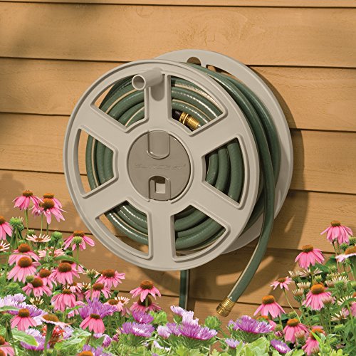 Suncast Sidetracker Garden Hose 100 ft Wall Mounted Tracker with Removable Reel Fully Assembled, feet, Taupe