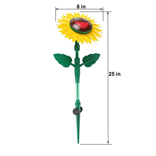 ROTATES TO GENTLY SHOWER GRASS AND PLANTS. Flower petals spin with eye catching pin wheel action